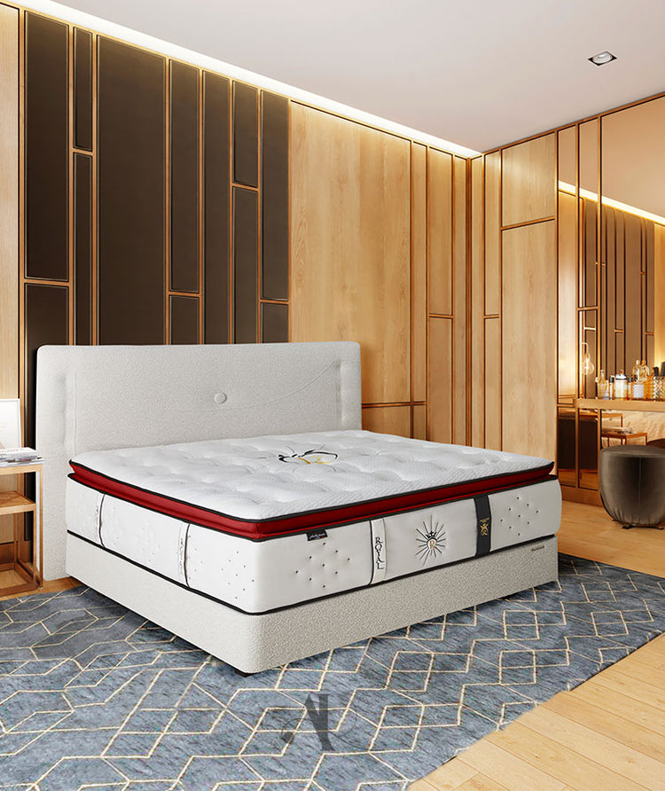 Sa suspension High & Low de 882 ressorts ensachés (en 160x200 cm) répartit parfaitement les points de pression grâce à ses 5 zones de confort ergonomique, tout en garantissant une excellente indépendance de couchage et une aération constante.