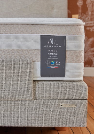 Les matelas André Renault allient technologie avancée et savoir-faire français. La mousse haute densité Élastorem® Soja séduit par sa douceur enveloppante, sa tonicité équilibrée et sa respirabilité exceptionnelle. Sa structure ventilée, enrichie d’huile de soja, assure un confort durable et une régulation naturelle de l’humidité, pour des nuits fraîches et réparatrices. Associée à des ressorts ensachés offrant une excellente indépendance de couchage, elle garantit un soutien personnalisé. Le tout est habillé de tissus nobles, pensés pour durer.