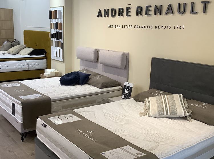 Dans notre espace d'exposition, vous découvrirez une sélection exclusive de literies haut de gamme, conçues pour offrir un confort inégalé et un soutien optimal. Chaque lit, chaque matelas, est un exemple du savoir-faire artisanal et de l'innovation technologique qui font la renommée d'André Renault.