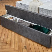 Disponible en largeurs 140, 160 et 180 cm, il propose un volume de rangement de 92 litres pour le modèle 160 cm.