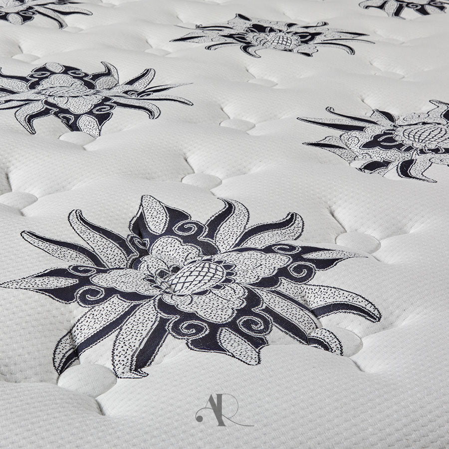 La suspension JOEY (795 ressorts ensachés en 160x200 cm) intègre un double ressort innovant : l’un absorbe l’accueil, l’autre soutient le corps en profondeur, zone par zone. Ce système, renforcé au niveau du bassin, offre une excellente indépendance de couchage, un alignement parfait de la colonne vertébrale et une longévité renforcée.