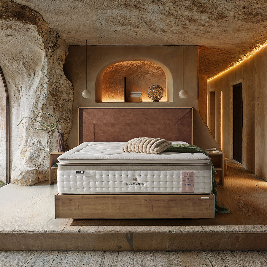 Plongez dans un cocon de confort haute précision avec le matelas Caldera, joyau technologique de la collection Éléments signée André Renault.