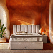 Exprimez votre style en personnalisant votre literie. Choisissez parmi plus de 40 têtes de lit sur-mesure, avec éclairage ou recharge intégrés. Associez-les à un sommier fixe ou de relaxation et complétez avec nos accessoires artisanaux : bancs-coffres, chevets, tablettes et une large palette de tissus ou décors bois.