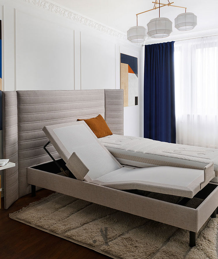 Le sommier de relaxation électrique Nova allie ergonomie, design soigné et personnalisation.