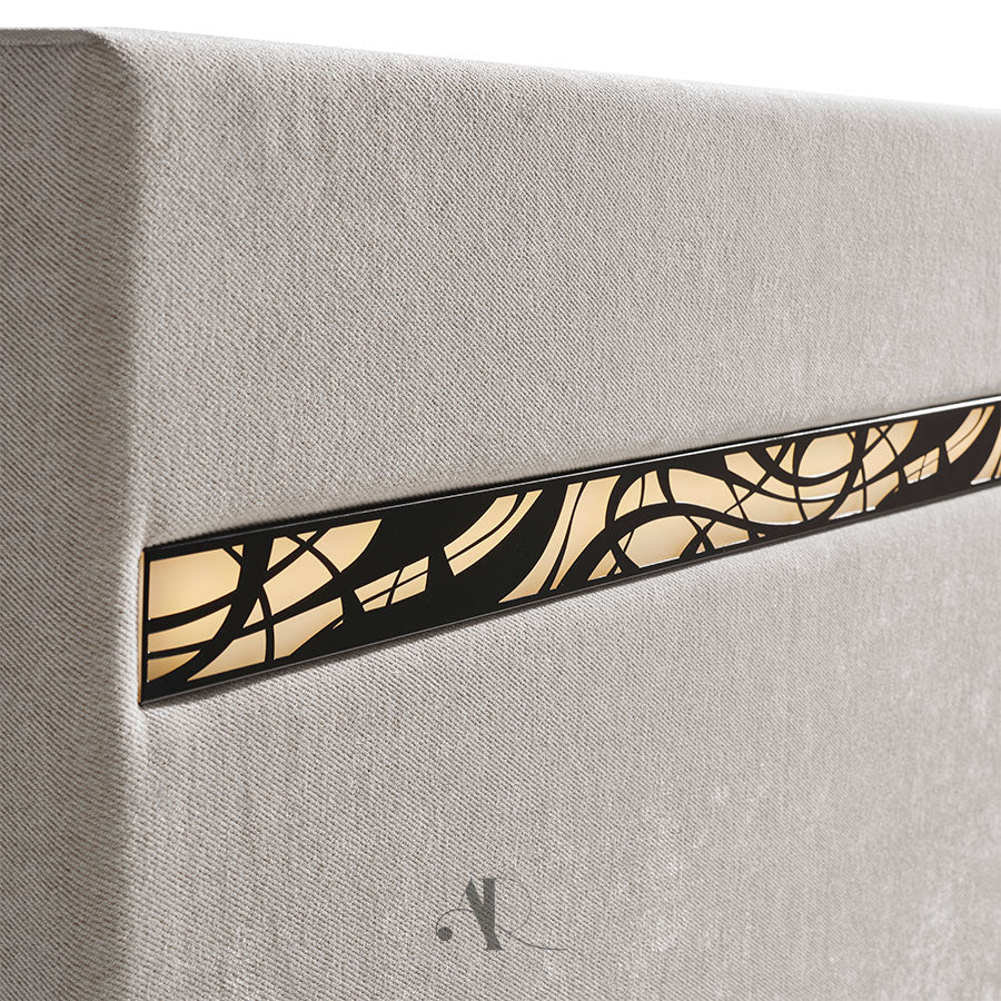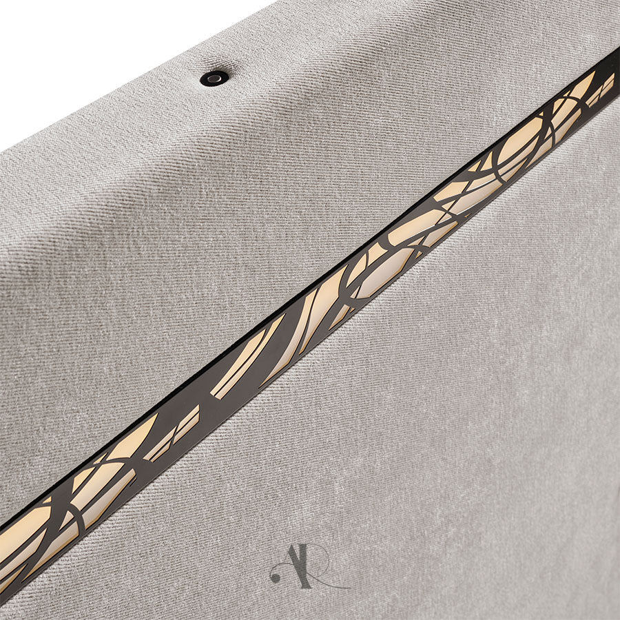 La tête de lit tissu Erevan séduit par son design moderne et sa lumière d’ambiance intégrée, idéale pour créer une atmosphère douce et apaisante dans votre chambre. Grâce à sa rampe LED modulable, vous personnalisez l’intensité lumineuse selon vos envies, tout en apportant une touche déco originale.
