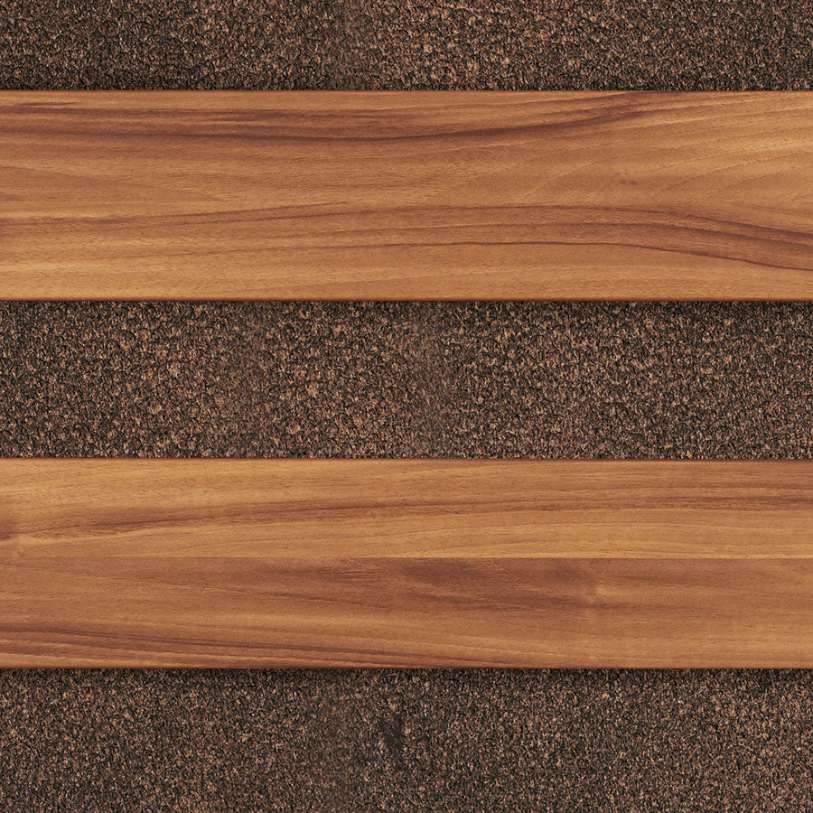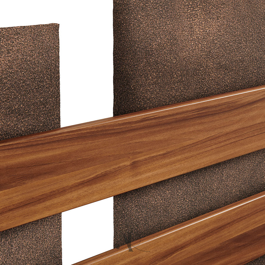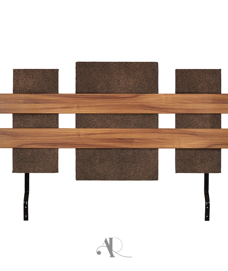 La tête de lit en bois et tissu Faro se distingue par sa structure en MDF avec deux profils en long-pans de section 135×19 mm, enrobée de papier décor pour un rendu soigné.