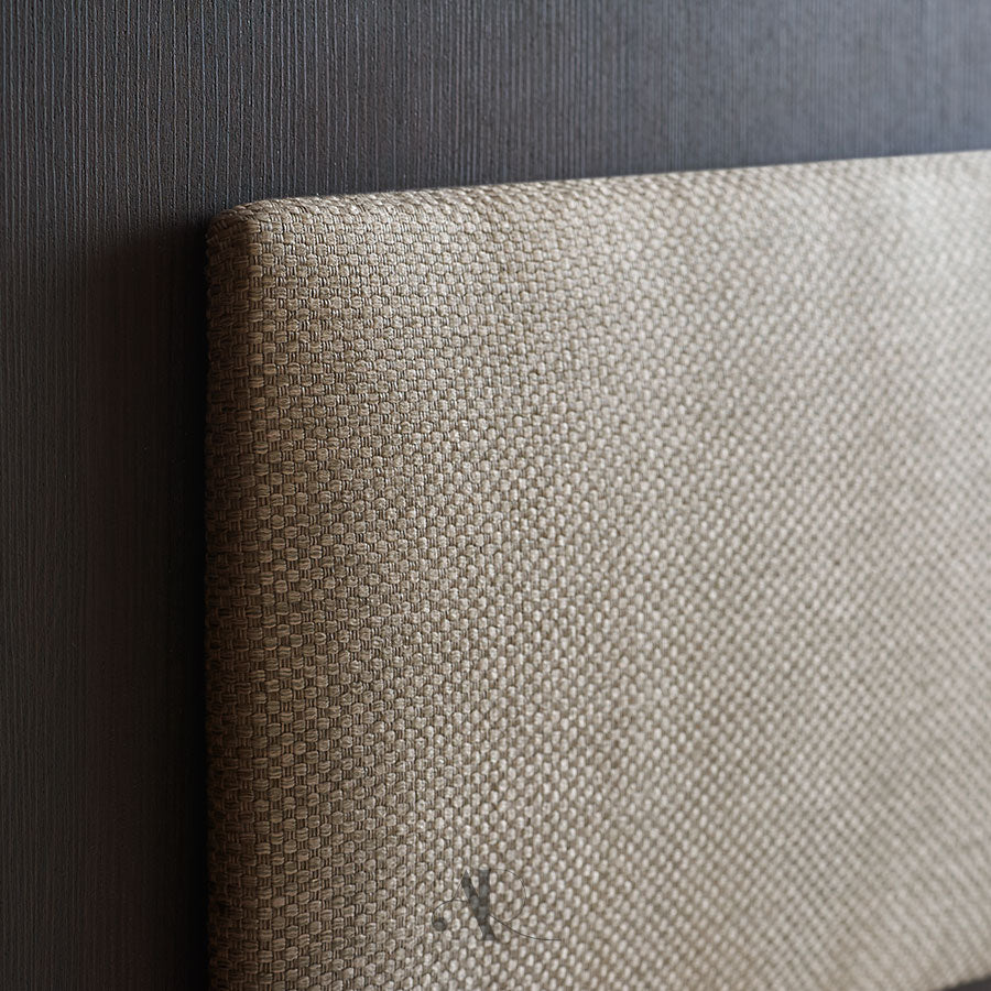 Elle intègre une bande centrale en MDF de 12 mm d’épaisseur, habillée de fibre polyester et tissu déco, ajoutant une touche textile élégante et personnalisable.
