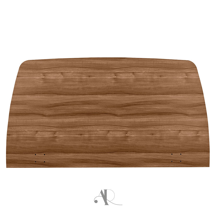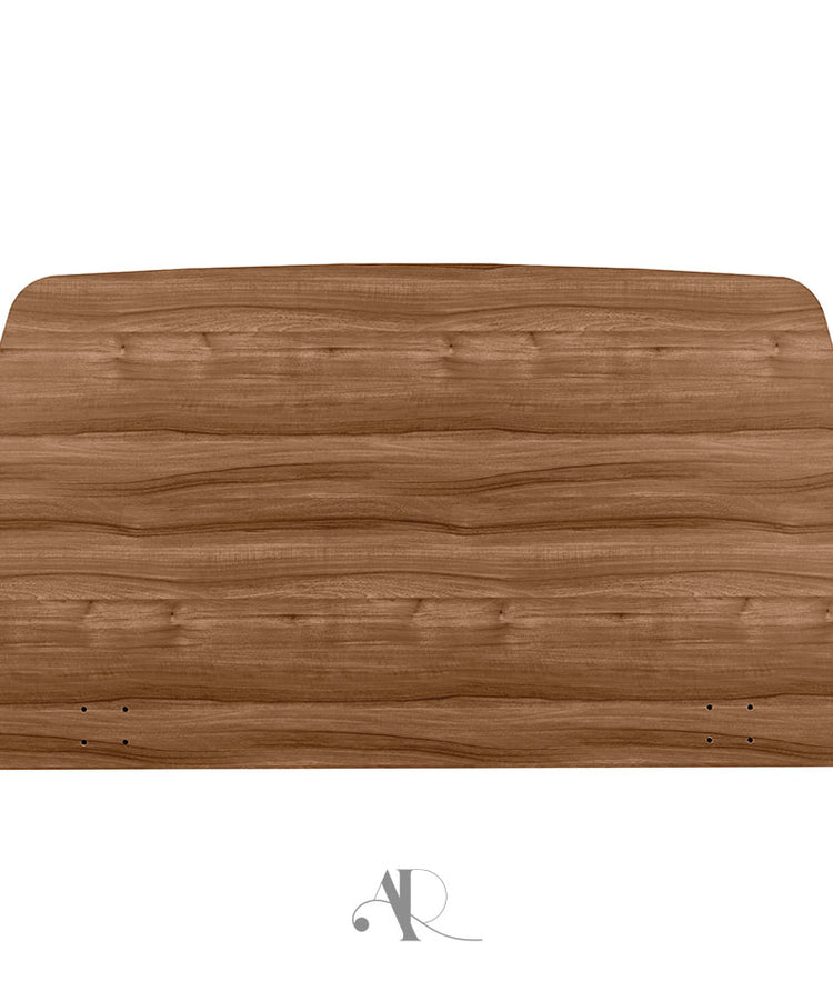 La tête de lit bois Nouméa est conçue en panneaux MDF et mousse, recouverts d’un papier décor pour une esthétique naturelle et durable.