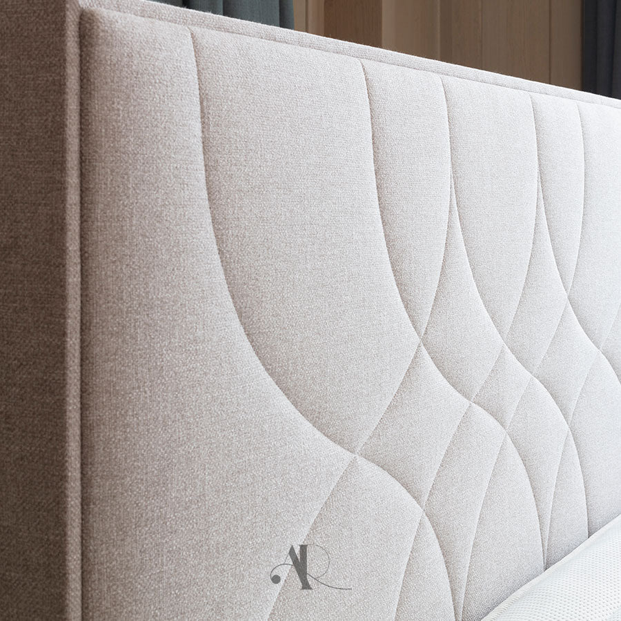 La tête de lit tissu Santiago se distingue par sa finition tapissier design, disponible dans toutes les versions de tissus déco pour s’adapter à votre style. Sa structure en fibre polyester fixée sur un panneau OSB assure robustesse et confort, tandis que son design épuré et ses options modulables — comme la prise USB ou la lampe Lullaby — en font un élément fonctionnel et esthétique pour une chambre raffinée.