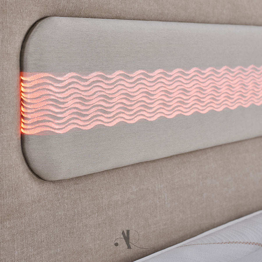 Avec Boréal, André Renault repousse les limites du confort et de l’innovation en créant une tête de lit à la fois décorative et intelligente. Grâce à un bandeau lumineux intégré, conçu avec une technologie textile exclusive à base de fibres optiques, Boréal offre une expérience sensorielle incomparable.