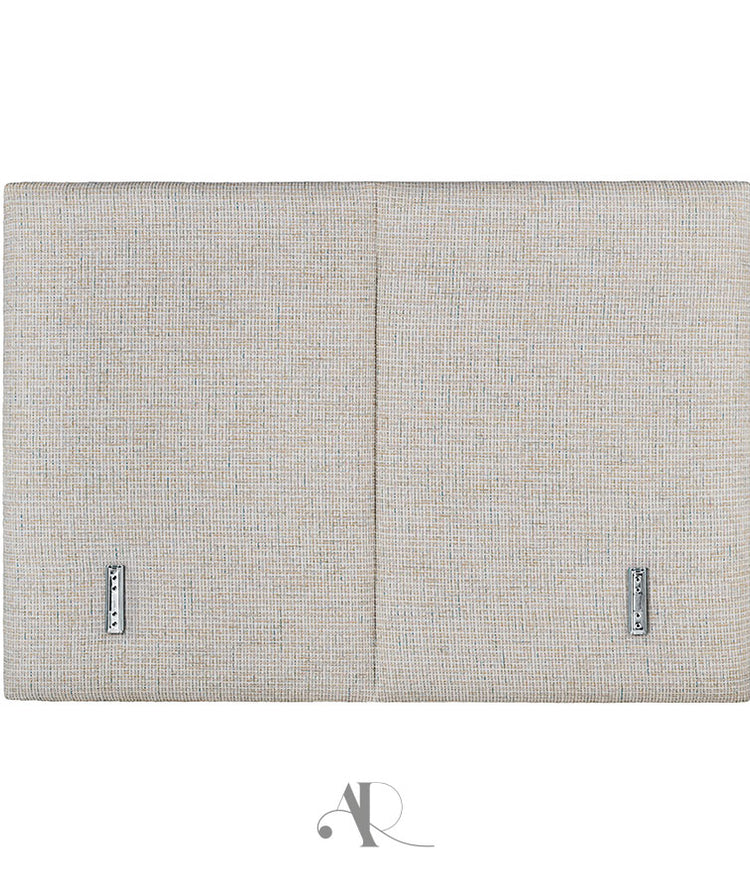 Disponible en largeurs de 100 à 200 cm, Canberra se fixe facilement au sommier grâce à un système de glissières. Avec sa hauteur totale de 121 cm et son épaisseur de 9 cm, elle apporte un volume accueillant tout en restant élégante.