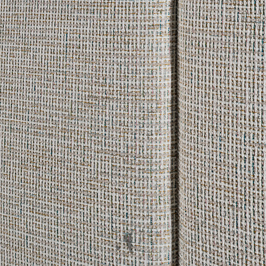 Son garnissage généreux associe une ouate polyester et une mousse épaisse, fixés sur un panneau recouvert de tissu déco pour une finition soignée et contemporaine.